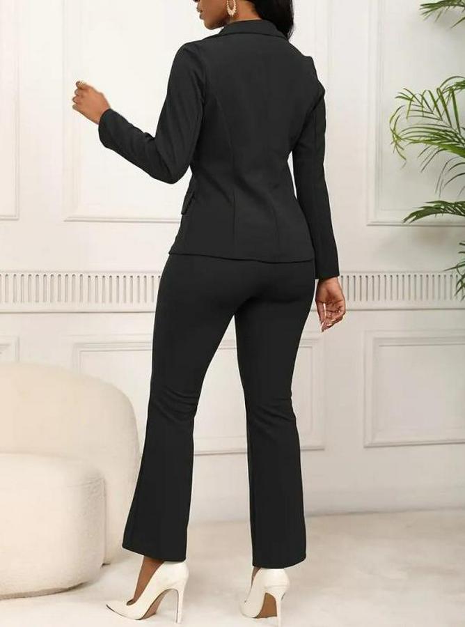 Kadın Uzun Kollu Yakalı Tek Düğme Detaylı Astarlı Ithal Krep Ceket Ve Pantolon Ikili Takım