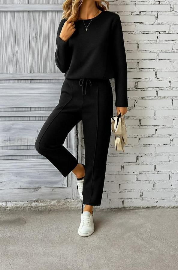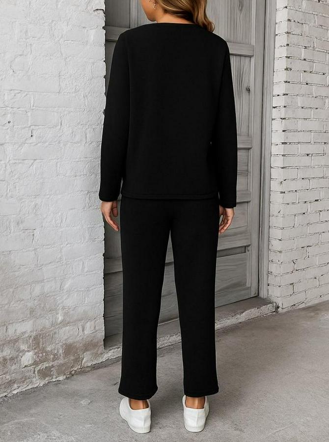 Kadın Uzun Kollu Yanları Nervurlu Viskon Iki Iplik Ve Pantolon Ikili Takım