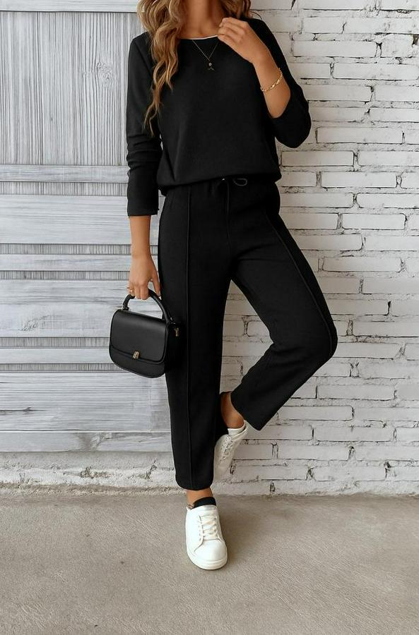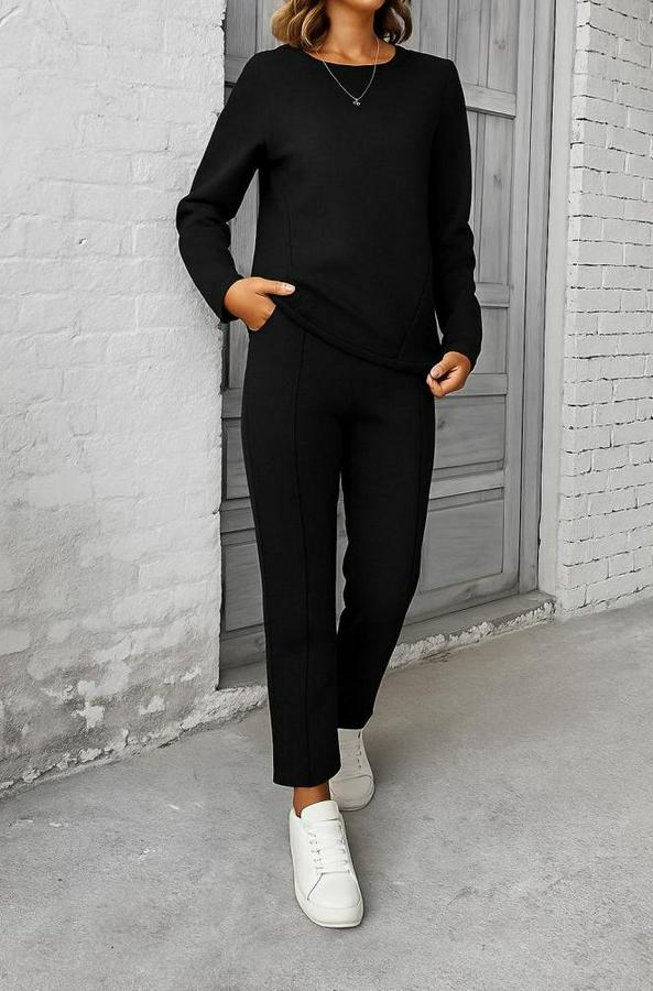 Uzun Kollu Yanları Nervurlu Viskon Iki Iplik Ve Pantolon Ikili Takım