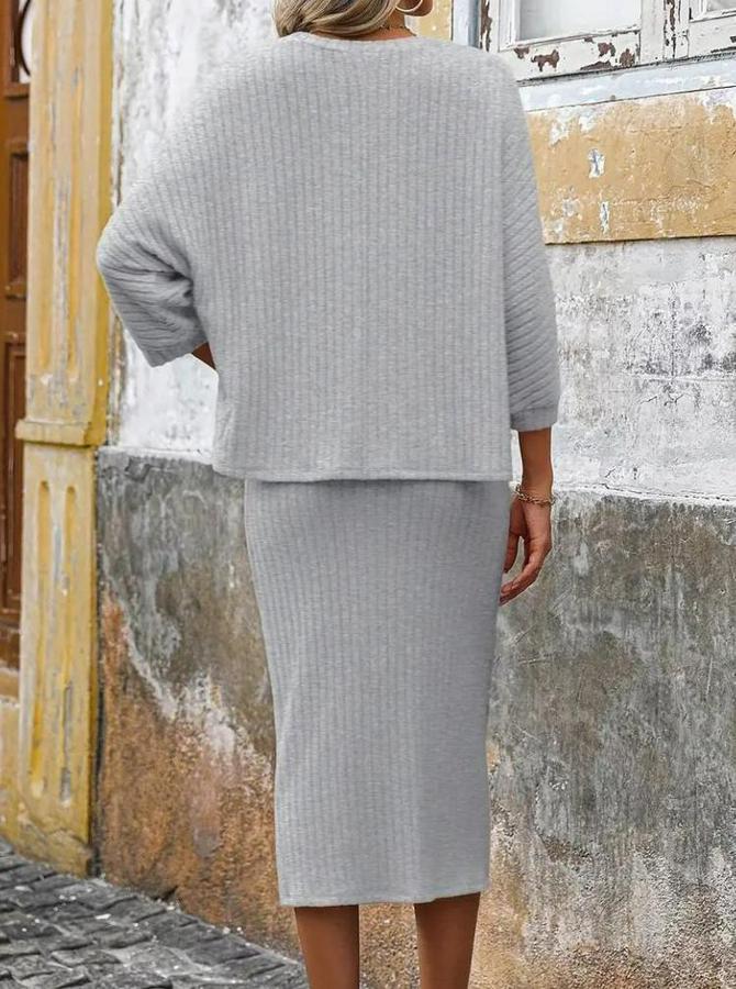 Kadın Uzun Kollu Yuvarlak Yakalı şardonlu Kaşkorse Bluz Ve Etek Ikili Takım