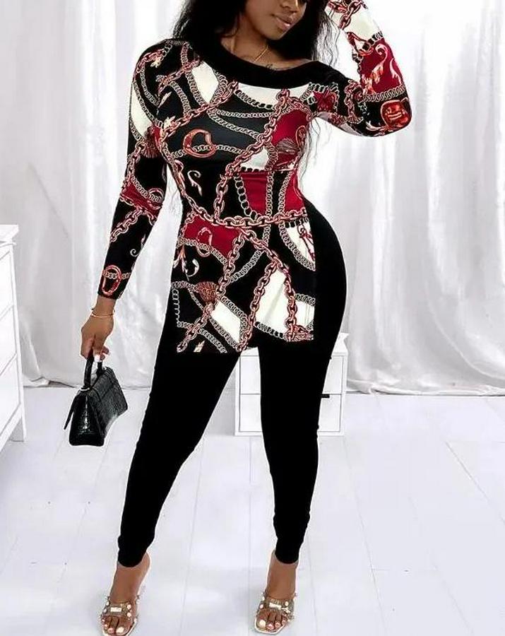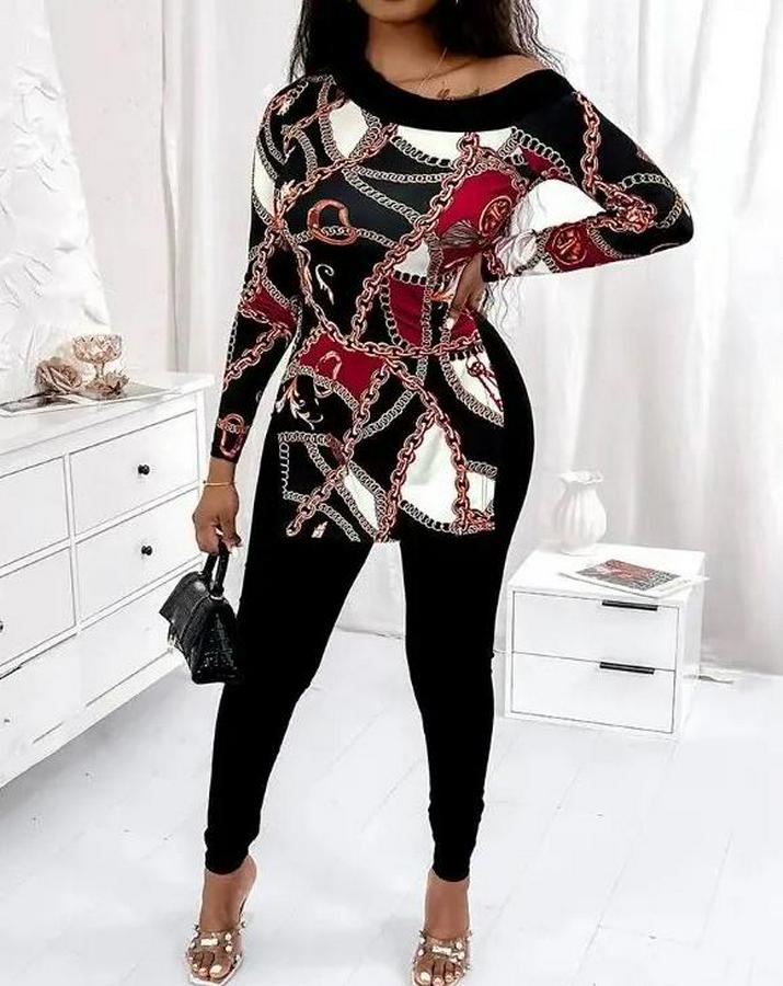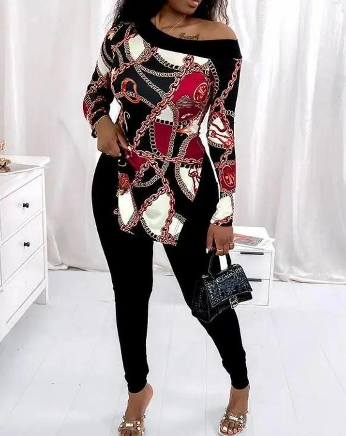 AnasayfaTüm ÜrünlerTakımlarAlt - Üst TakımUzun Kollu Zincir Desen Tek Omuz Düşük Mikro Bluz