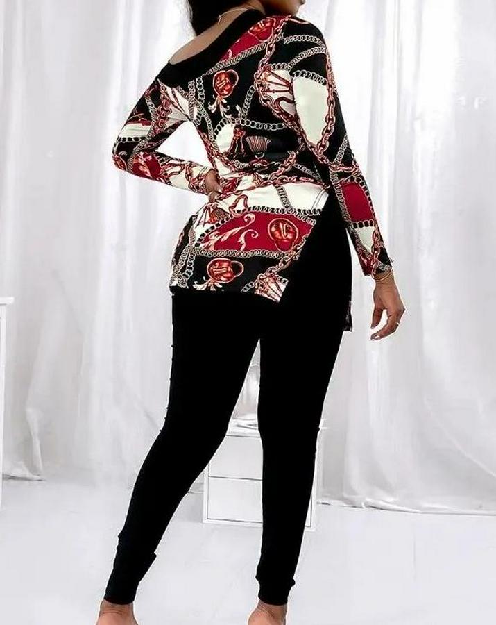 Uzun Kollu Zincir Desen Tek Omuz Düşük Mikro Bluz
