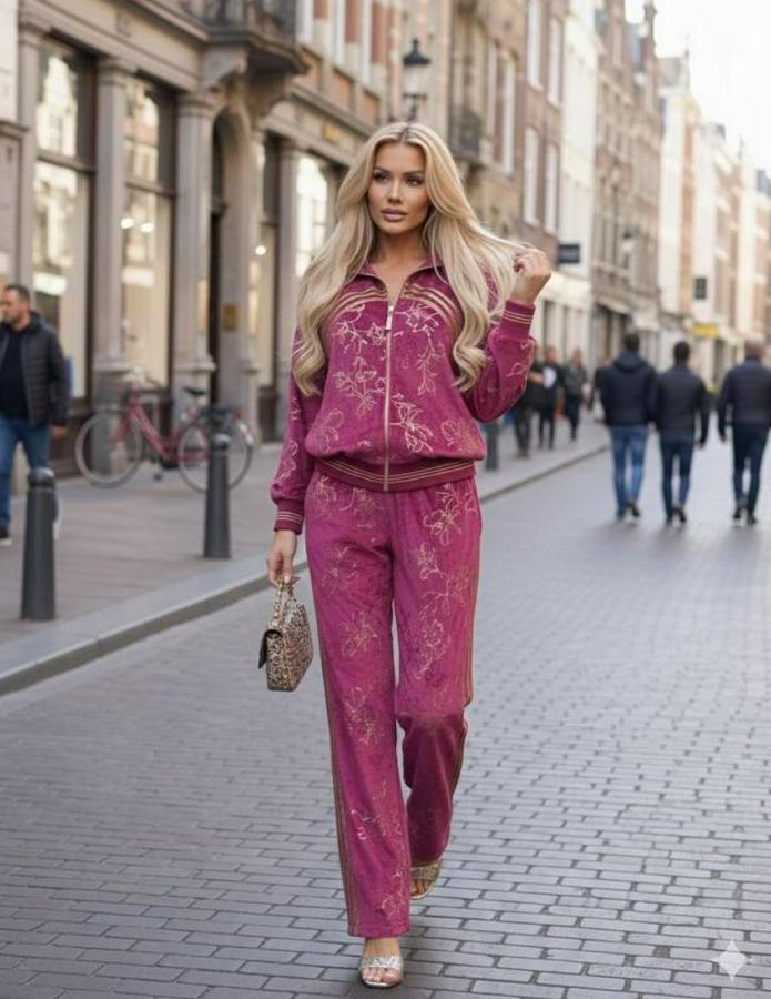 Varak Baskılı Kadife Kumaş Hırka Ve Pantolon Ikili Takım