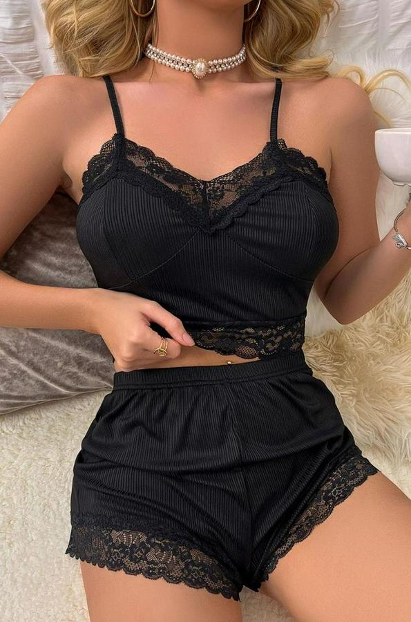 AnasayfaTüm ÜrünlerTakımlarAlt - Üst TakımViskon Siyah  Askılı Dantelli Zarif  Şortlu Takım