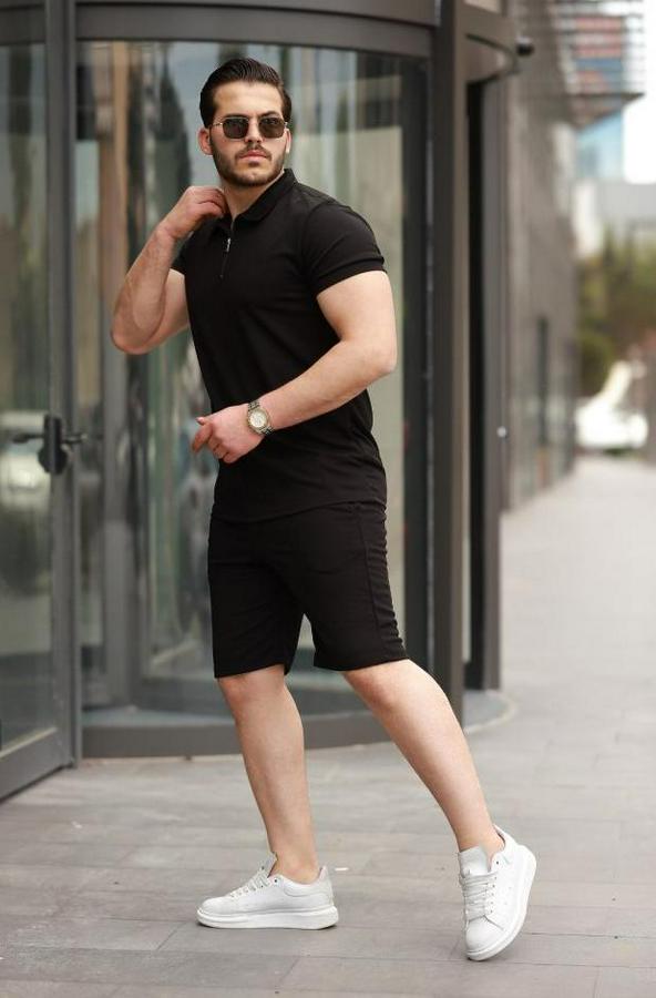 Erkek Yakalı Fermuarlı T-shirt şort Ikili Takım