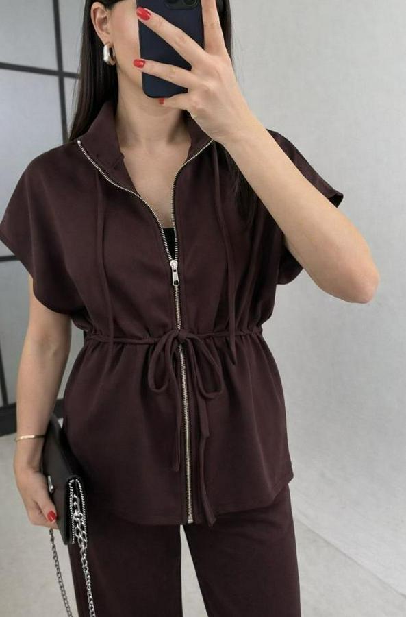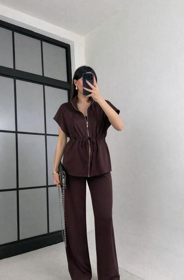 Kadın Yarasa Kol Fermuar Ve Lastikli Bağcık Detay Ceket Pantolon Ikili Takım