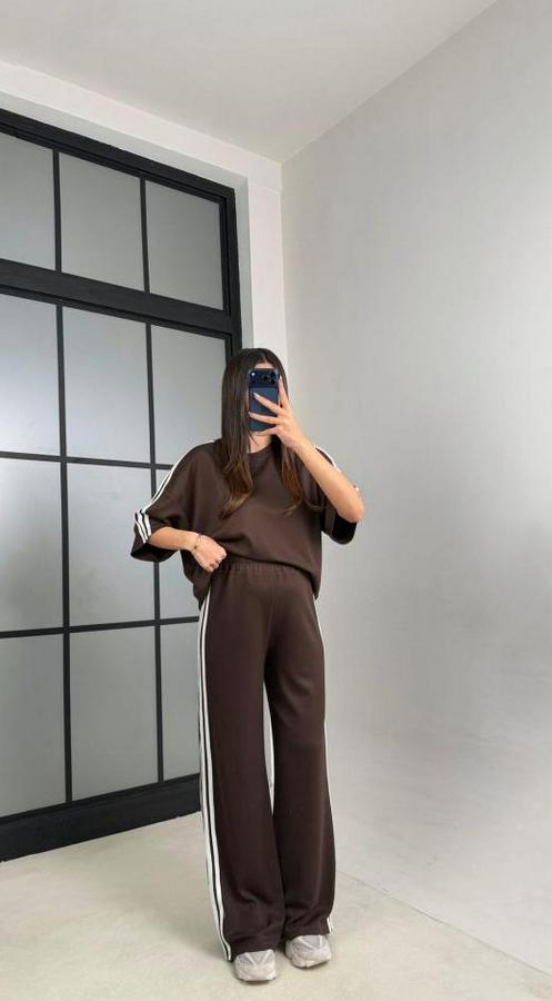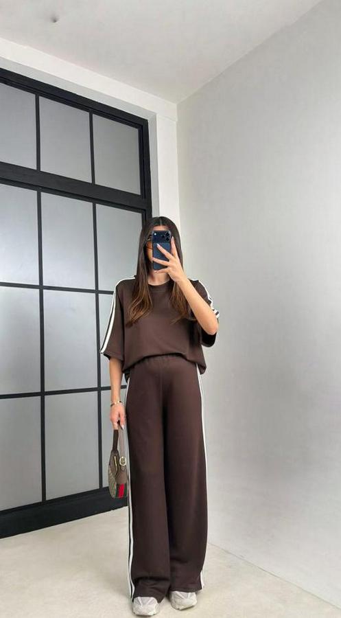 AnasayfaTüm ÜrünlerTakımlarAlt - Üst TakımYarasa Kol Yanları Şerit Detay Modal Kumaş Ikili Takım
