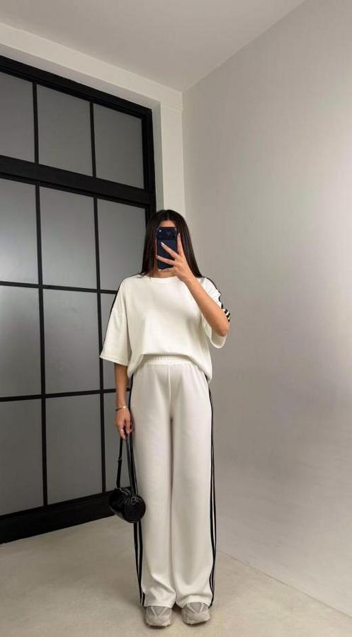 AnasayfaTüm ÜrünlerTakımlarAlt - Üst TakımYarasa Kol Yanları Şerit Detay Modal Kumaş Ikili Takım