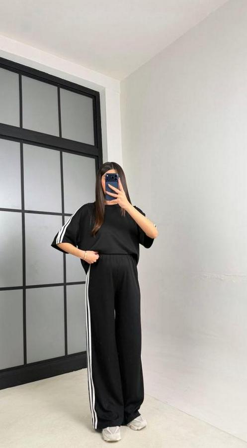 AnasayfaTüm ÜrünlerTakımlarAlt - Üst TakımYarasa Kol Yanları Şerit Detay Modal Kumaş Ikili Takım