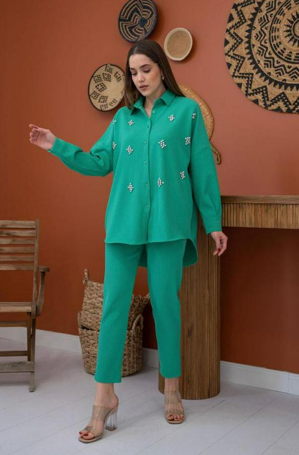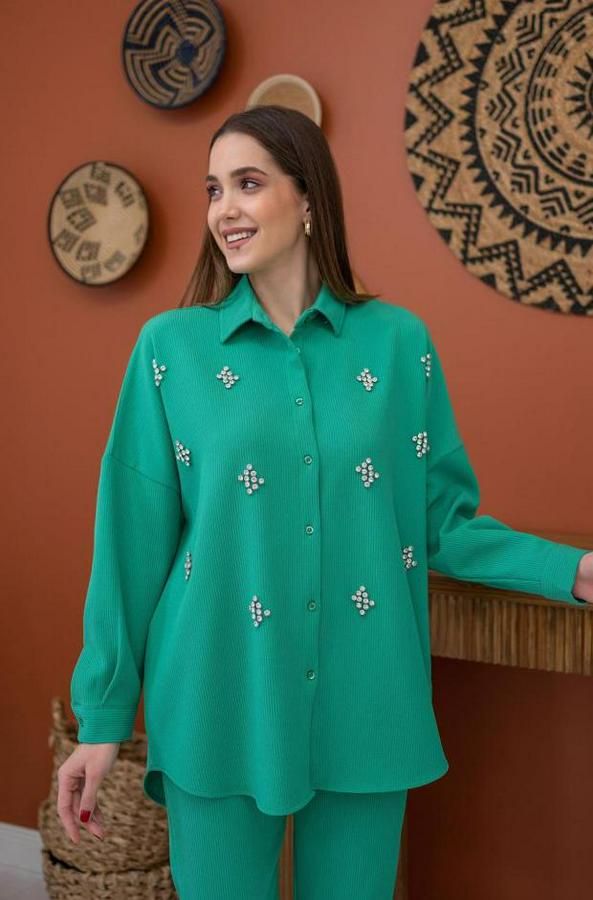 AnasayfaTüm ÜrünlerTakımlarAlt - Üst TakımYeşil Gömleği Taşlı Fitilli Takım
