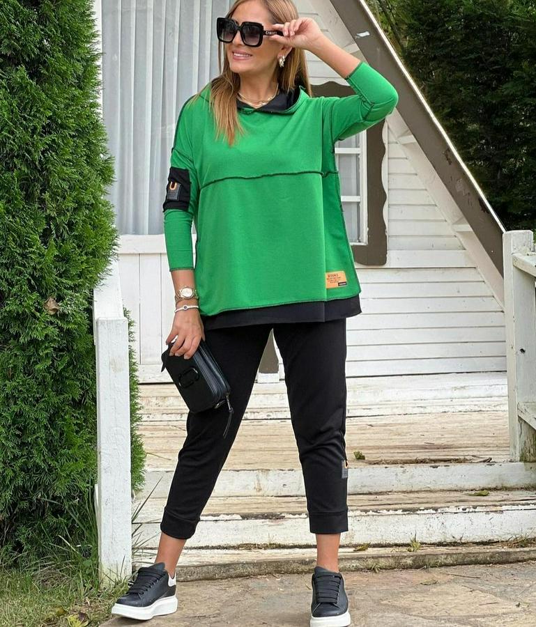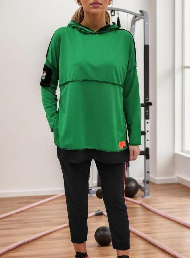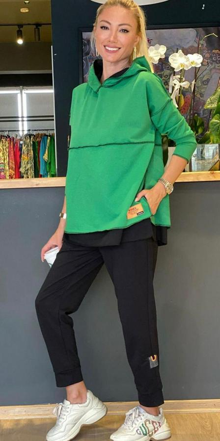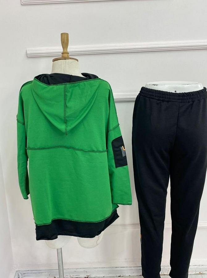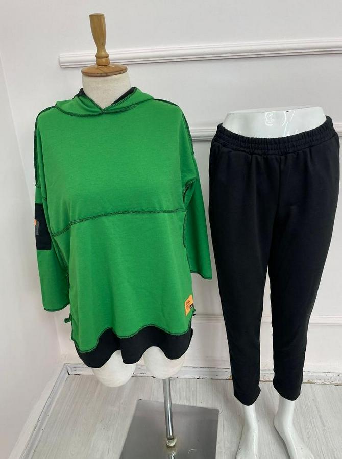 Yeşil Kapşonlu Etek Ucu Detay Arma Ters Dikiş Gorunumlu Ikili Takım