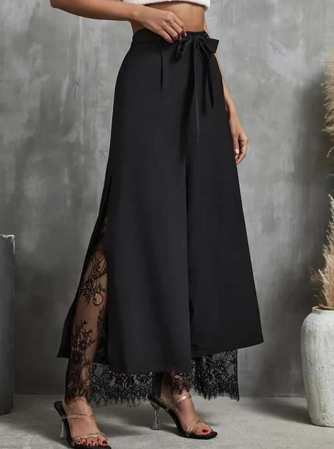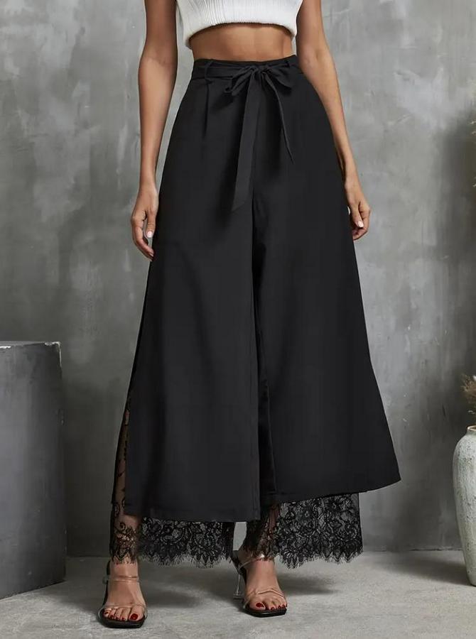 Yüksek Bel Belden Kuşaklı Üst Dalgıç Alt Dantel Detaylı Dalgıç Pantolon