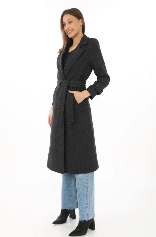 Balık Sırtı Kaşe Kaban – Uzun Boy Kruvaze Yaka Kuşaklı Astarlı Kışlık Tesettür Kaban, Yünlü Dokuma Kaşmir Kumaş, Cepli Rahat Oversize Kalıp Şık Modern