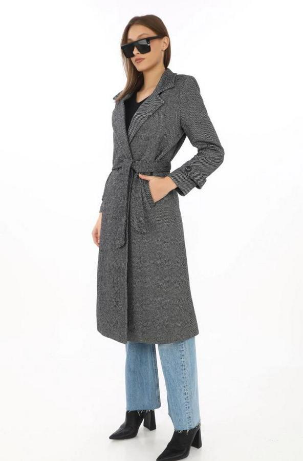 Balık Sırtı Kaşe Kaban – Uzun Boy Kruvaze Yaka Kuşaklı Astarlı Kışlık Tesettür Kaban, Yünlü Dokuma Kaşmir Kumaş, Cepli Rahat Oversize Kalıp Şık Modern Kaban Mont Modeli (Günlük Ve Özel Gün Kombinlerine Uygun) - Füme