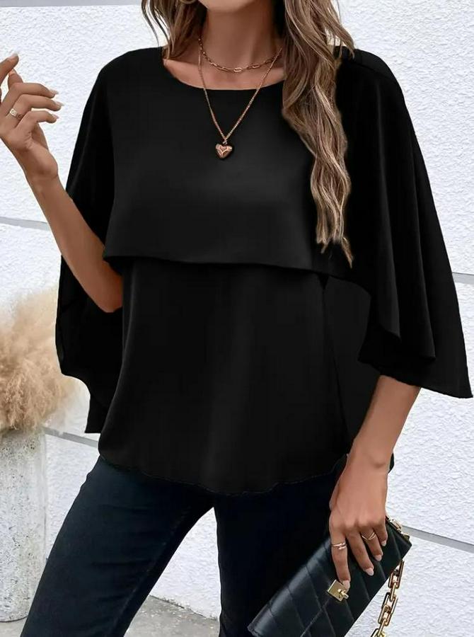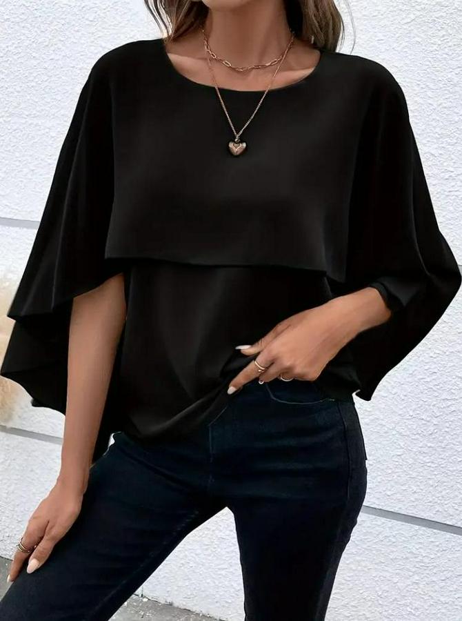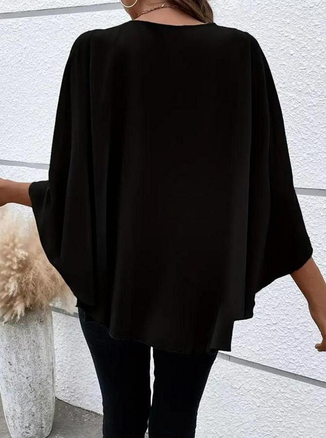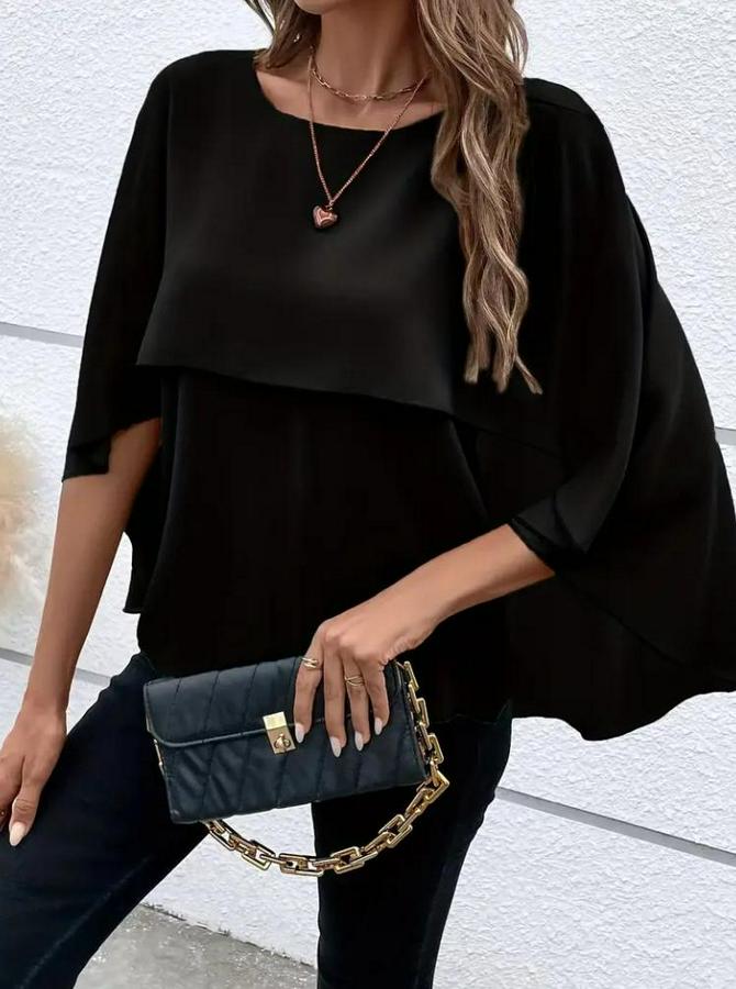 AnasayfaTüm ÜrünlerÜst GiyimBluz & TunikBluzAsimetrik Pelerin Kollu Yuvarlak Yaka Salaş Sandy Bluz