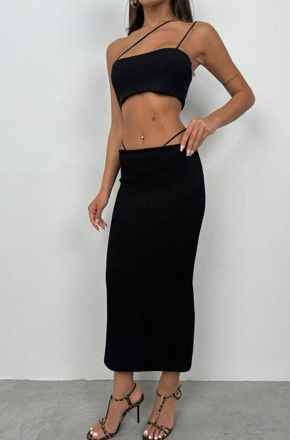 Askı Detay Straplez Dokulu Crop