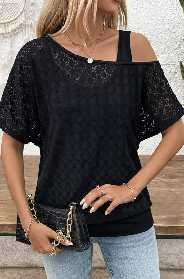 AnasayfaTüm ÜrünlerÜst GiyimBluz & TunikBluzAskılı Yuvarlak Yaka Viskon Atlet Ve Yarasa Kollu Omuzdan Açık Dantel Bluz Ikili Takım