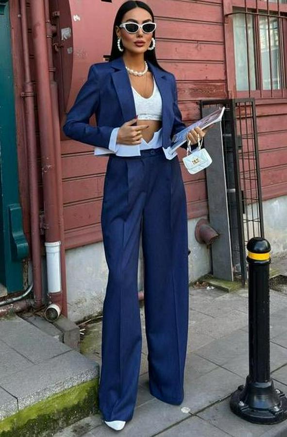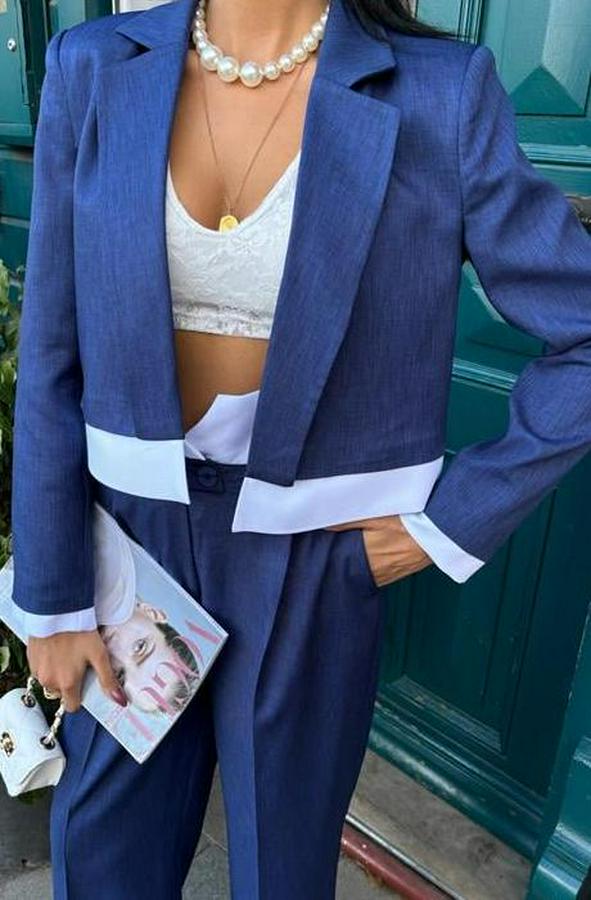 AnasayfaTüm ÜrünlerÜst GiyimBluz & TunikBluzAudrey Crop Ceket Takım 10106