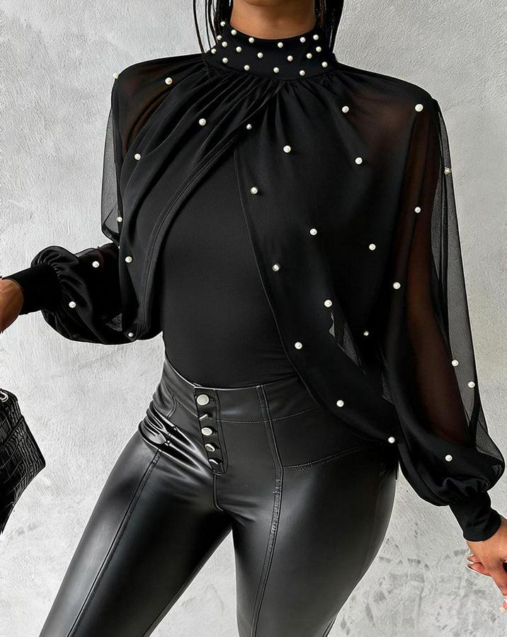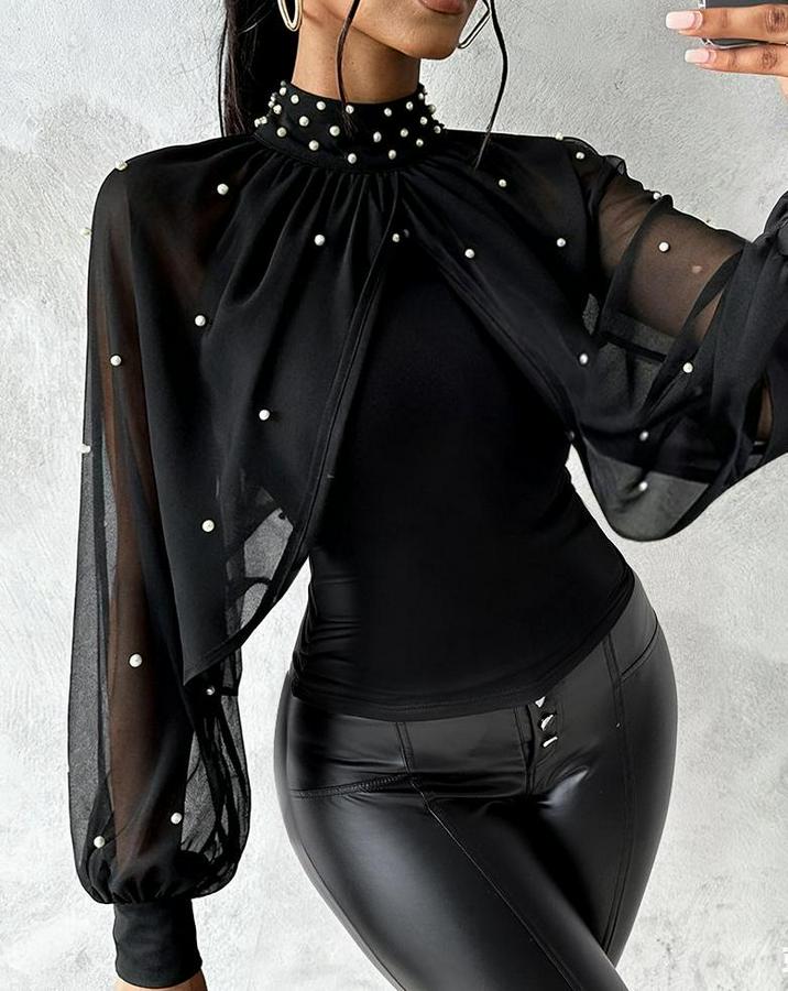 Kadın Balıkçı Yaka Incili Pelerin Ithal Krep Bluz