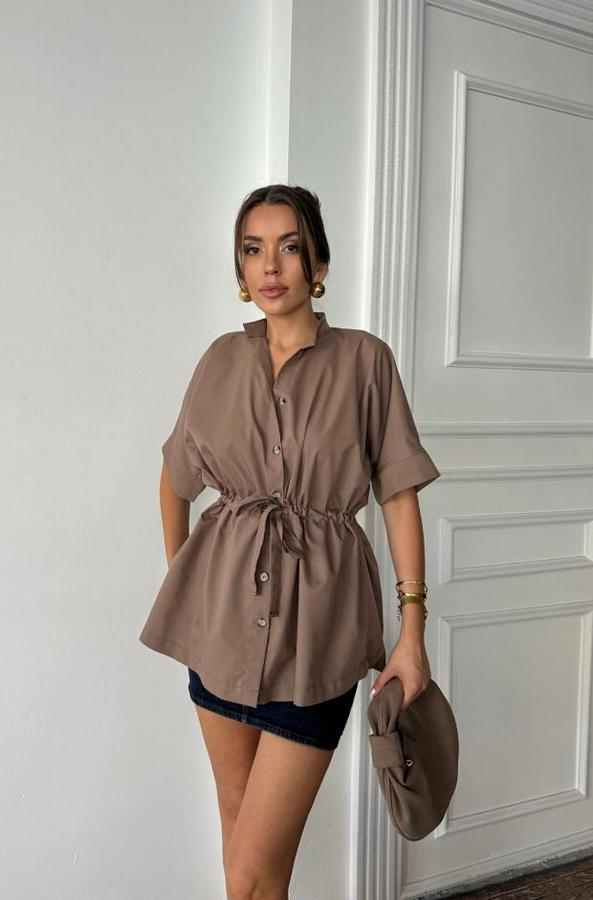 BEL BÜZGÜ DETAYLI POPLİN GÖMLEK - Kahverengi