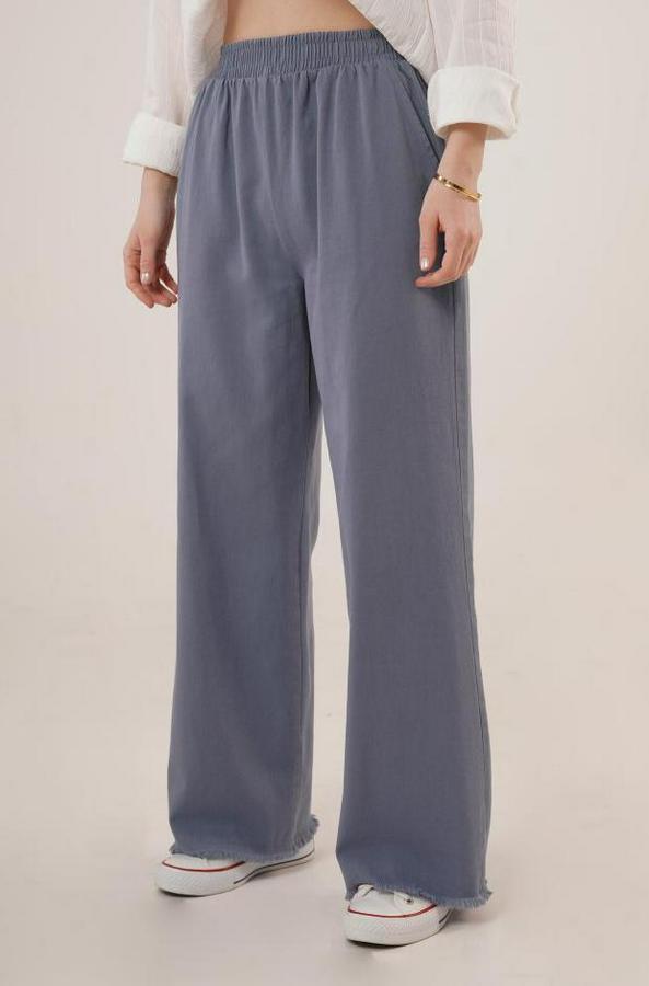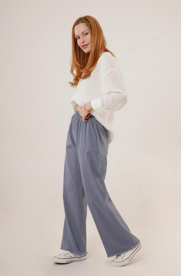 AnasayfaTüm ÜrünlerÜst GiyimBluz & TunikBluzBel Lastikli Paça Detaylı Cepli Indigo Pantolon