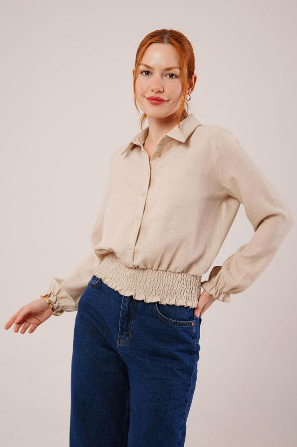 Bel Ve Bilek Lastikli Bej Bluz
