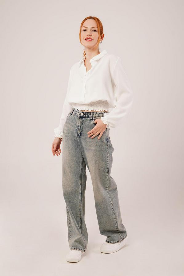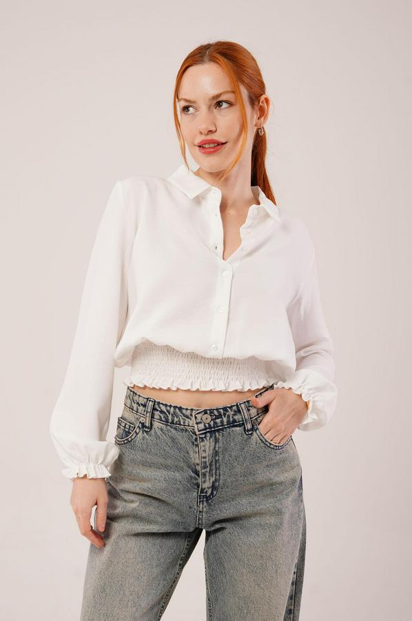 AnasayfaTüm ÜrünlerÜst GiyimBluz & TunikBluzBel Ve Bilek Lastikli Beyaz Bluz