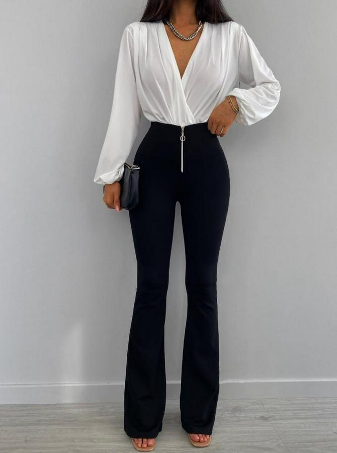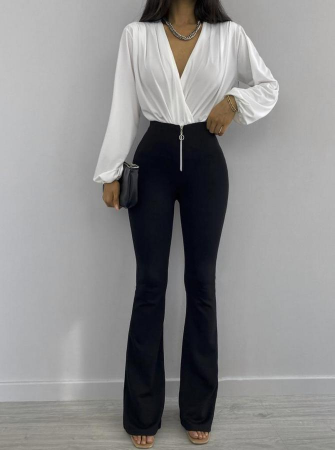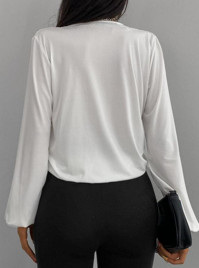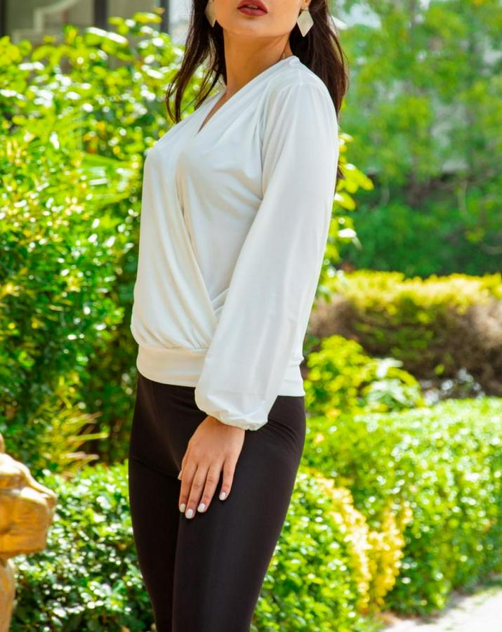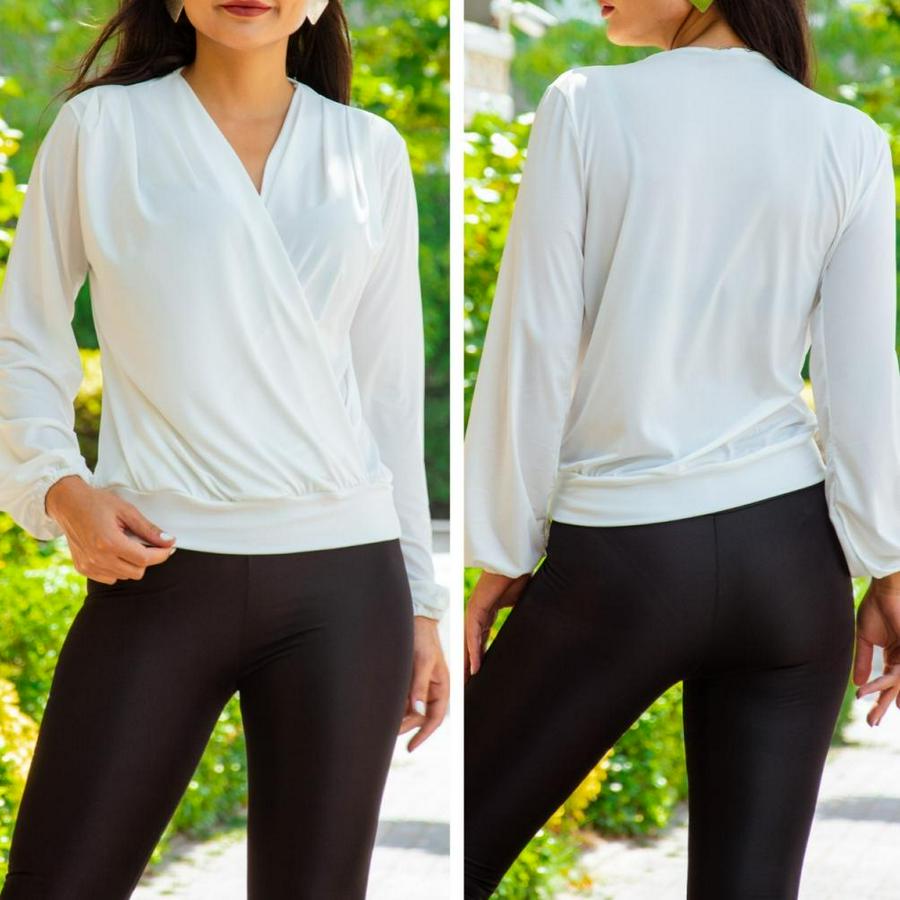 Kadın Beyaz Kruvaze Yaka Sandy Bluz