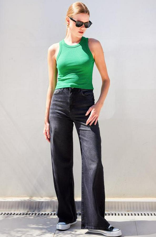917 Bisiklet Yaka Fitilli Kolsuz Bluz - Yeşil