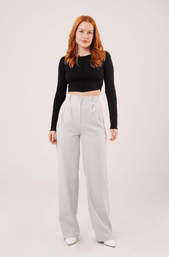 AnasayfaTüm ÜrünlerÜst GiyimBluz & TunikBluzBol Paça Piliseli Gri Pantolon