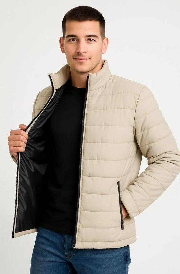 Erkek Bomber Mont Ceket – Su İtici Kumaş, Kapitone Astarlı, Fermuarlı, Kışlık - Bej