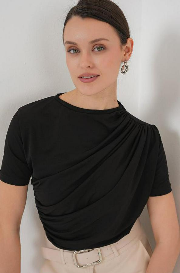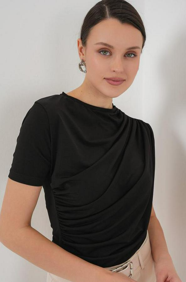Büzgü Detaylı Kısa Kol Sandy Bluz 945 - Siyah