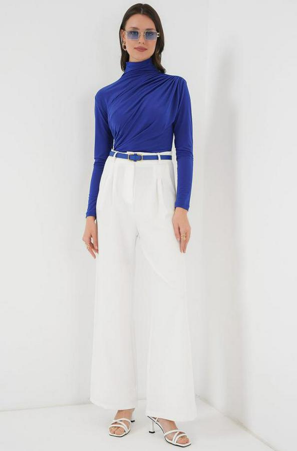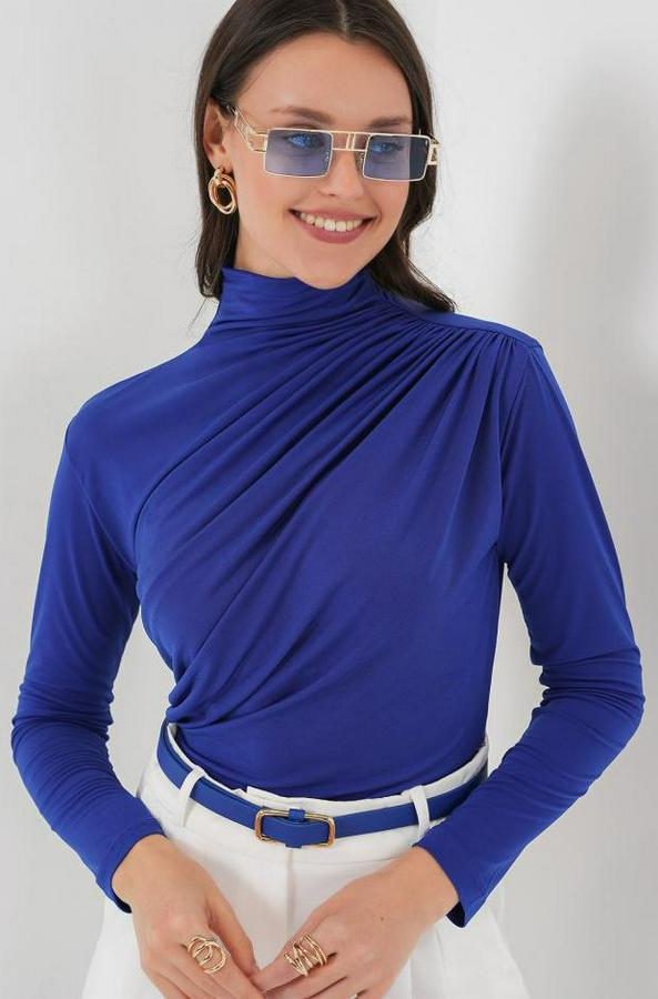 925 Büzgü Detaylı Sandy Bluz - Saks