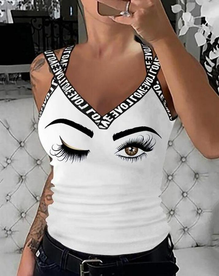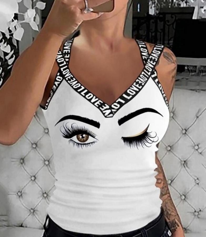 Kadın çapraz şeritli Göz Baskılı Viskon Bluz