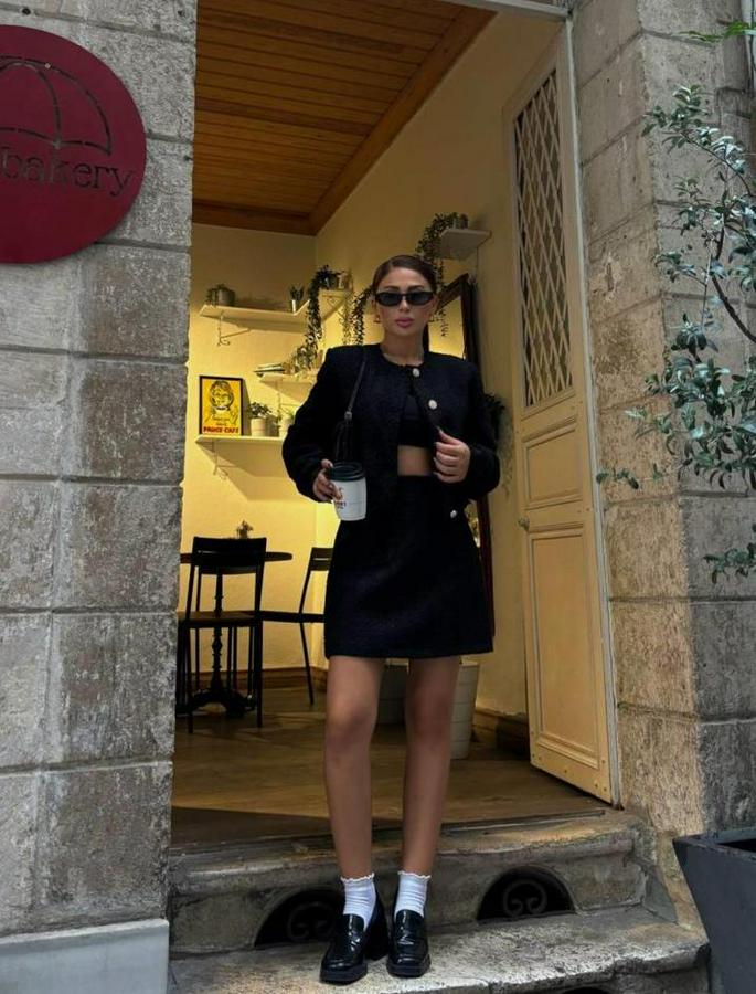 AnasayfaTüm ÜrünlerÜst GiyimBluz & TunikBluzChanel Crop Ceket-Kisa Etek Takim