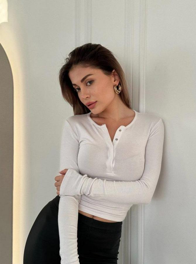 Cıt Cıt Detaylı Uzun Kollu Crop - Beyaz