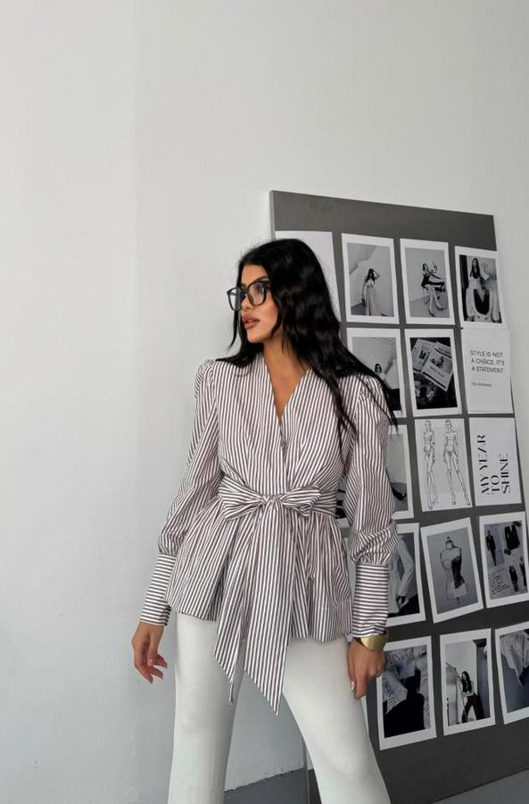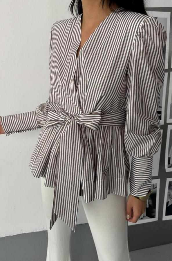 AnasayfaTüm ÜrünlerÜst GiyimBluz & TunikBluzÇizgili Bağlama Detayli Kruvaze Poplin Gömlek