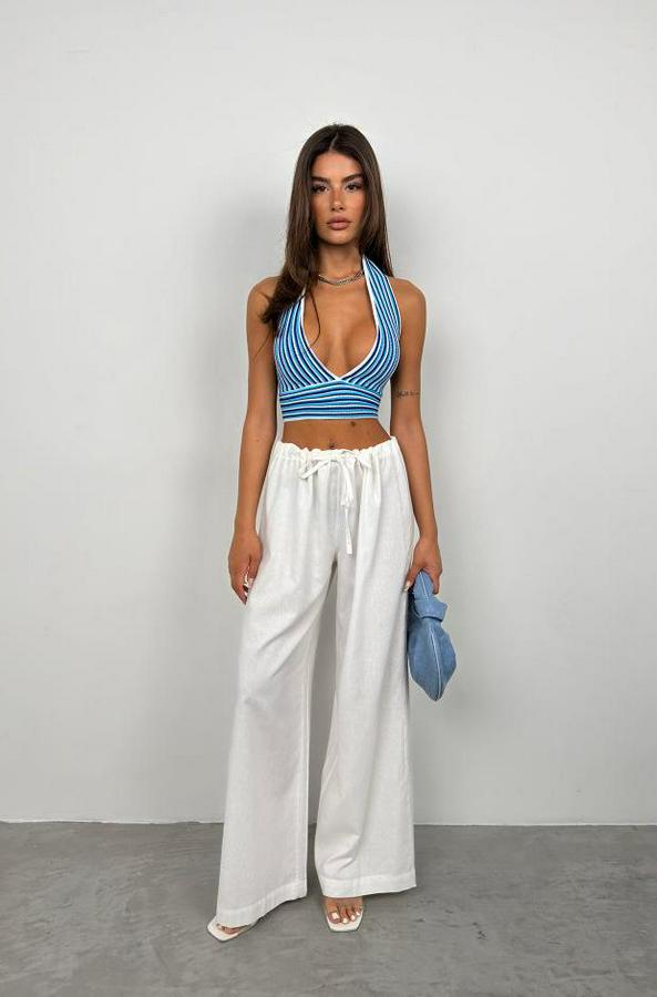 Çizgili Boyun Bağlamalı Crop
