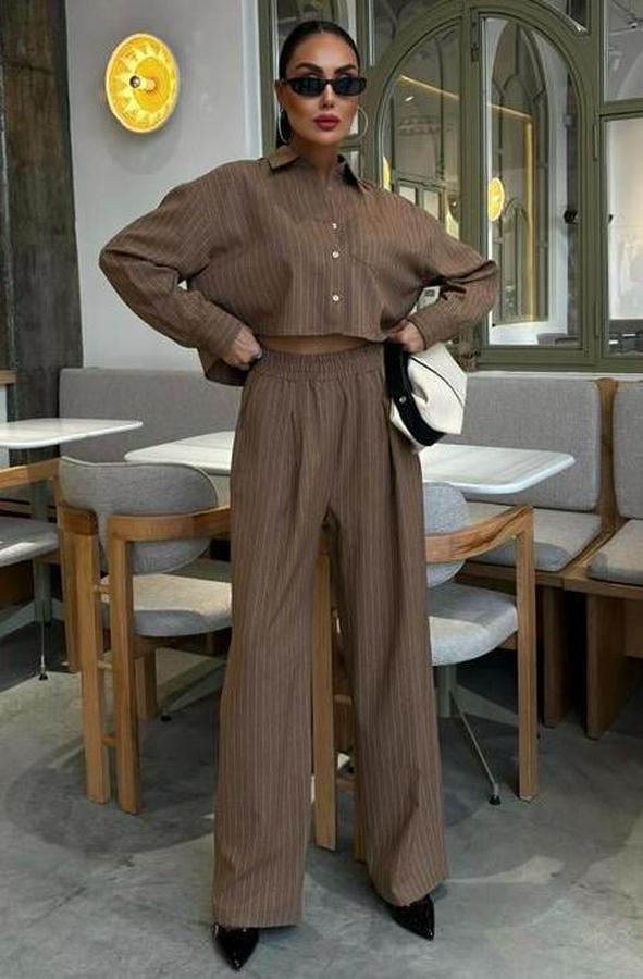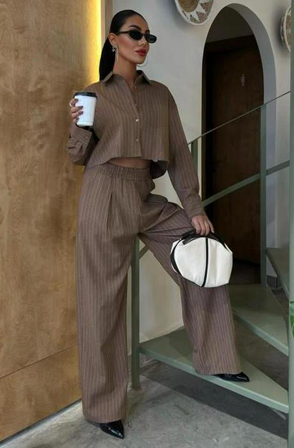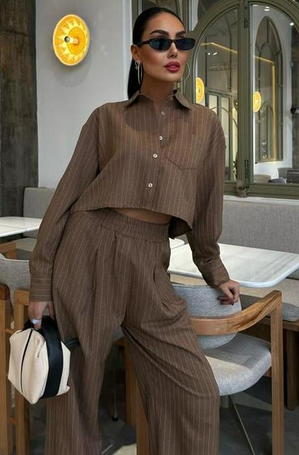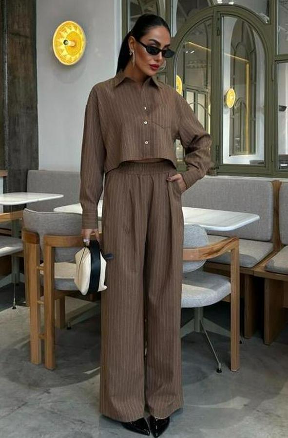 AnasayfaTüm ÜrünlerÜst GiyimBluz & TunikBluzCrop Gömlekli Çizgili Takım 10080