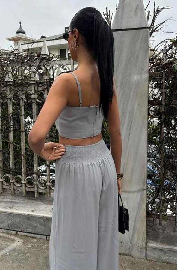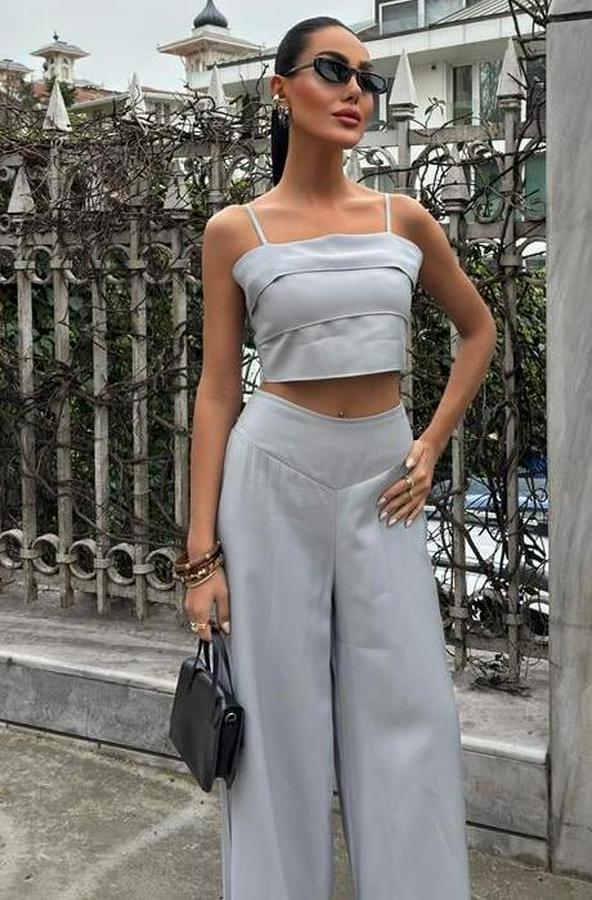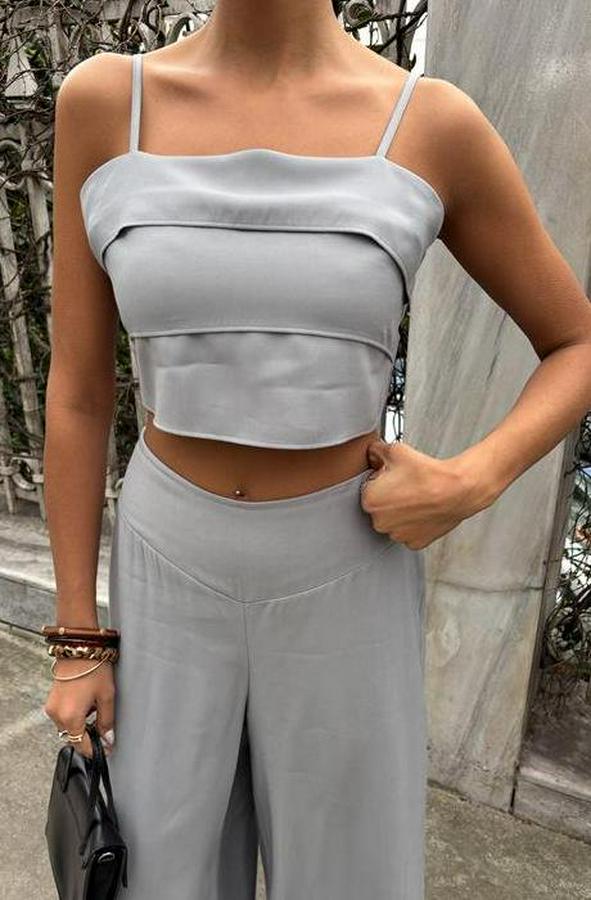AnasayfaTüm ÜrünlerÜst GiyimBluz & TunikBluzCrop Plazzo Pantolon Takım 10155-08