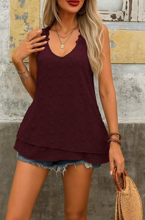 Kadın Dantel Askılı V Yakalı Sırtı çapraz Detaylı Ponpon Bluz