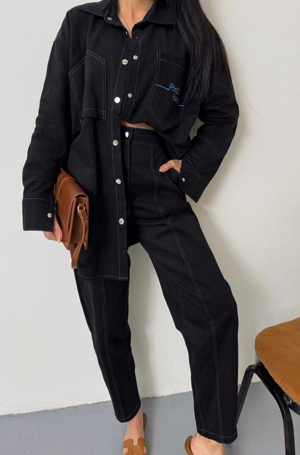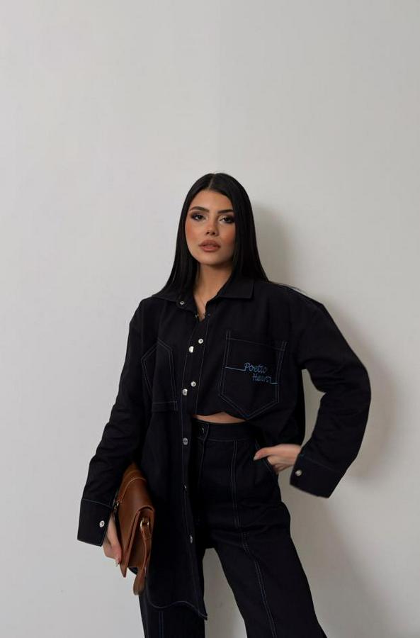AnasayfaTüm ÜrünlerÜst GiyimBluz & TunikBluzDenim Puntolu Gömlek-Pantolon Takim