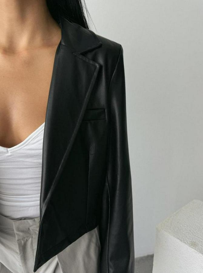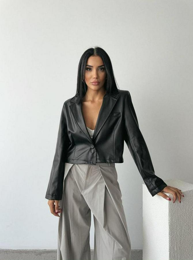 DERİ CROP CEKET TEK DÜĞME - Siyah