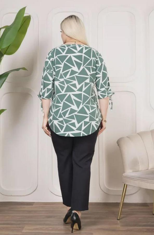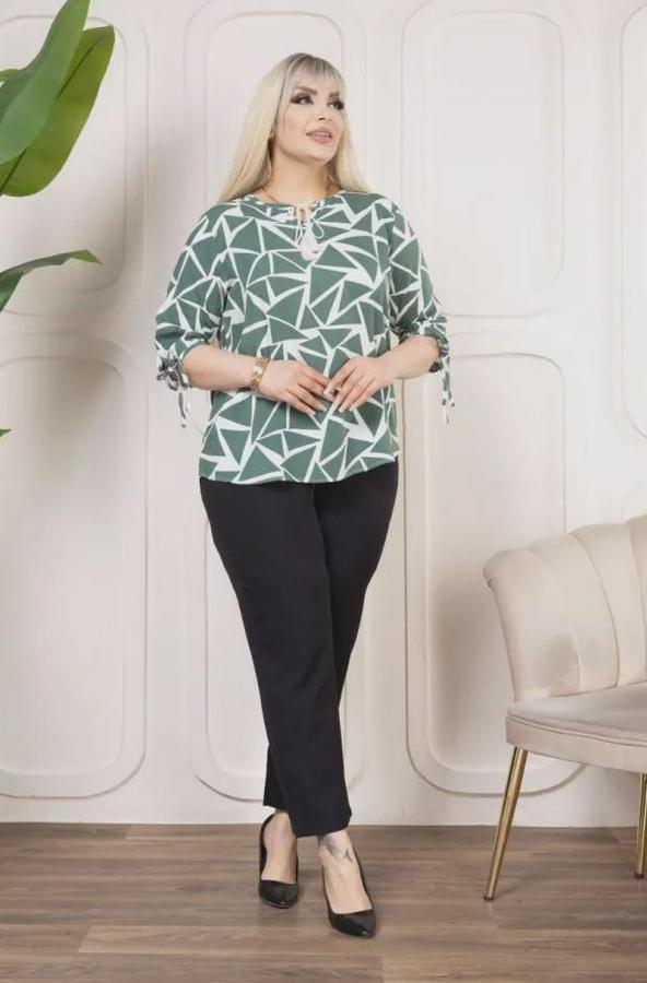AnasayfaTüm ÜrünlerÜst GiyimBluz & TunikBluzDesenli Püsküllü Viskon Bluz Bebe Yaka Kısa Kollu Big Size Rahat Kesim