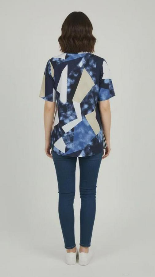 Desenli Püsküllü Viskon Bluz Bebe Yaka Kısa Kollu Big Size Rahat Kesim - Desenli