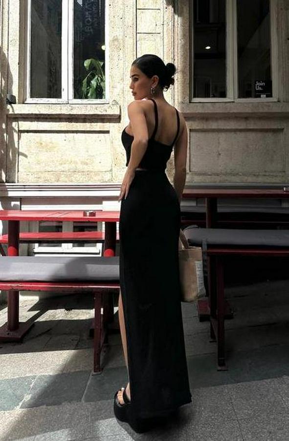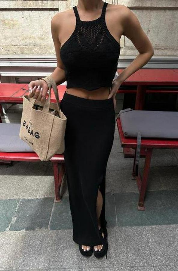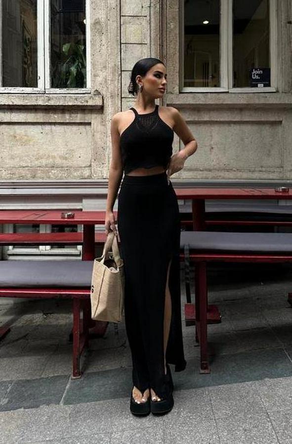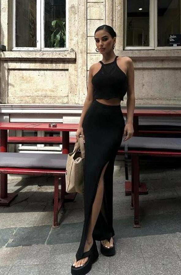 AnasayfaTüm ÜrünlerÜst GiyimBluz & TunikBluzElena Yırtmaç Detay Crop Takım 9834