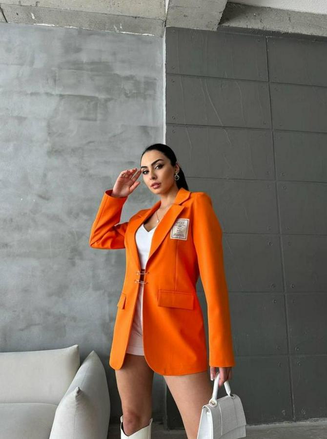 ELLO ETİKETLİ ÇENGELLİ İĞNE DETAYLI CEKET - Orange