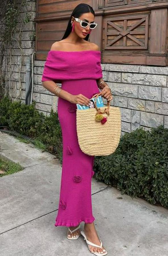 Eteği Gül Detay Madonna Yaka Elbise 2863