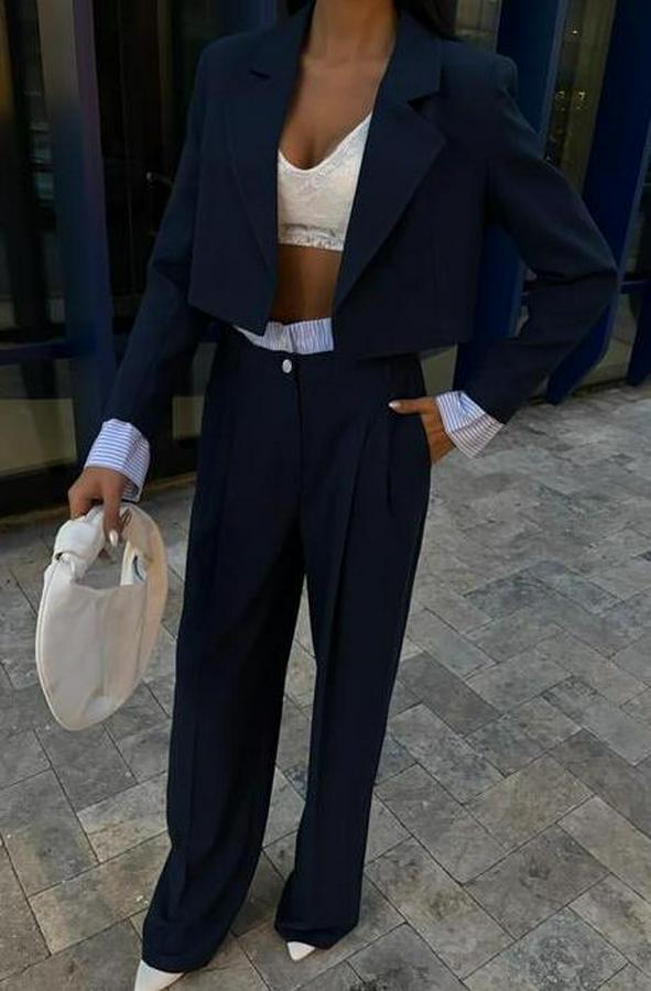 AnasayfaTüm ÜrünlerÜst GiyimBluz & TunikBluzGarni Detaylı Crop Ceketli Takım 10075