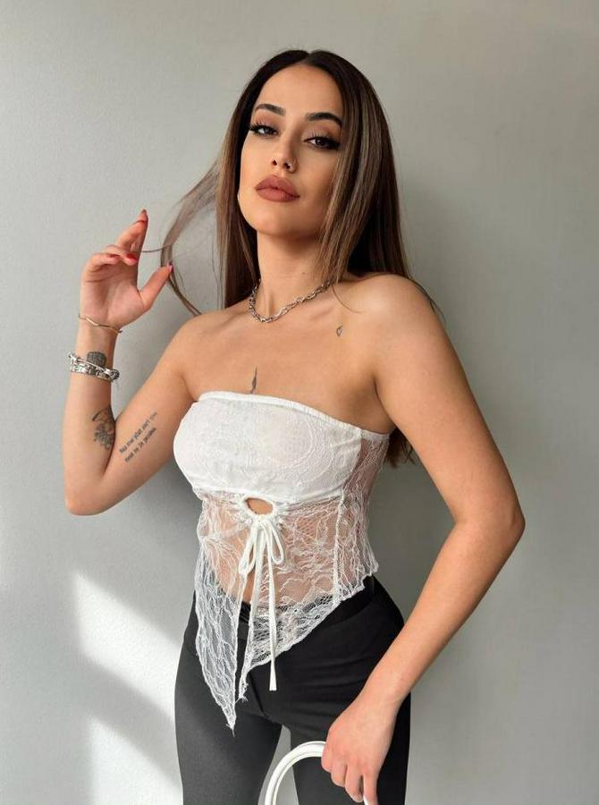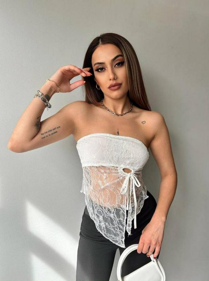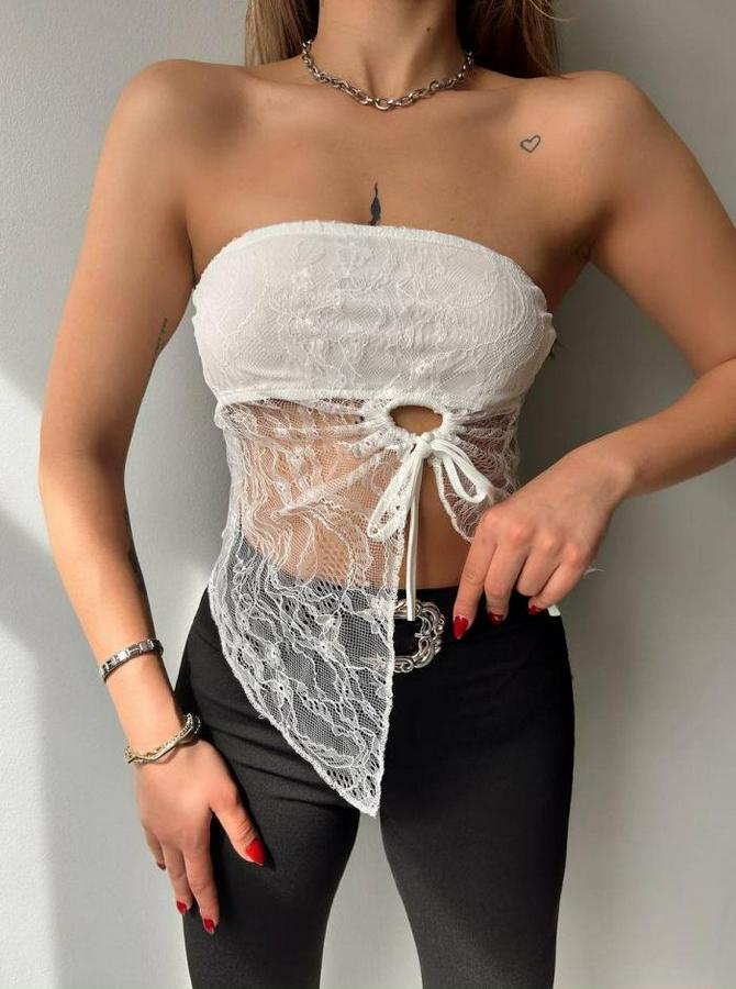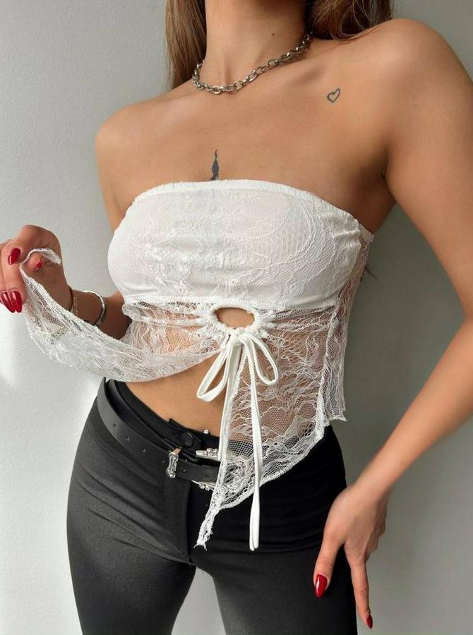 Göğüs Ve Sırt Dekolteli Transparan Dantel Detay Bluz
